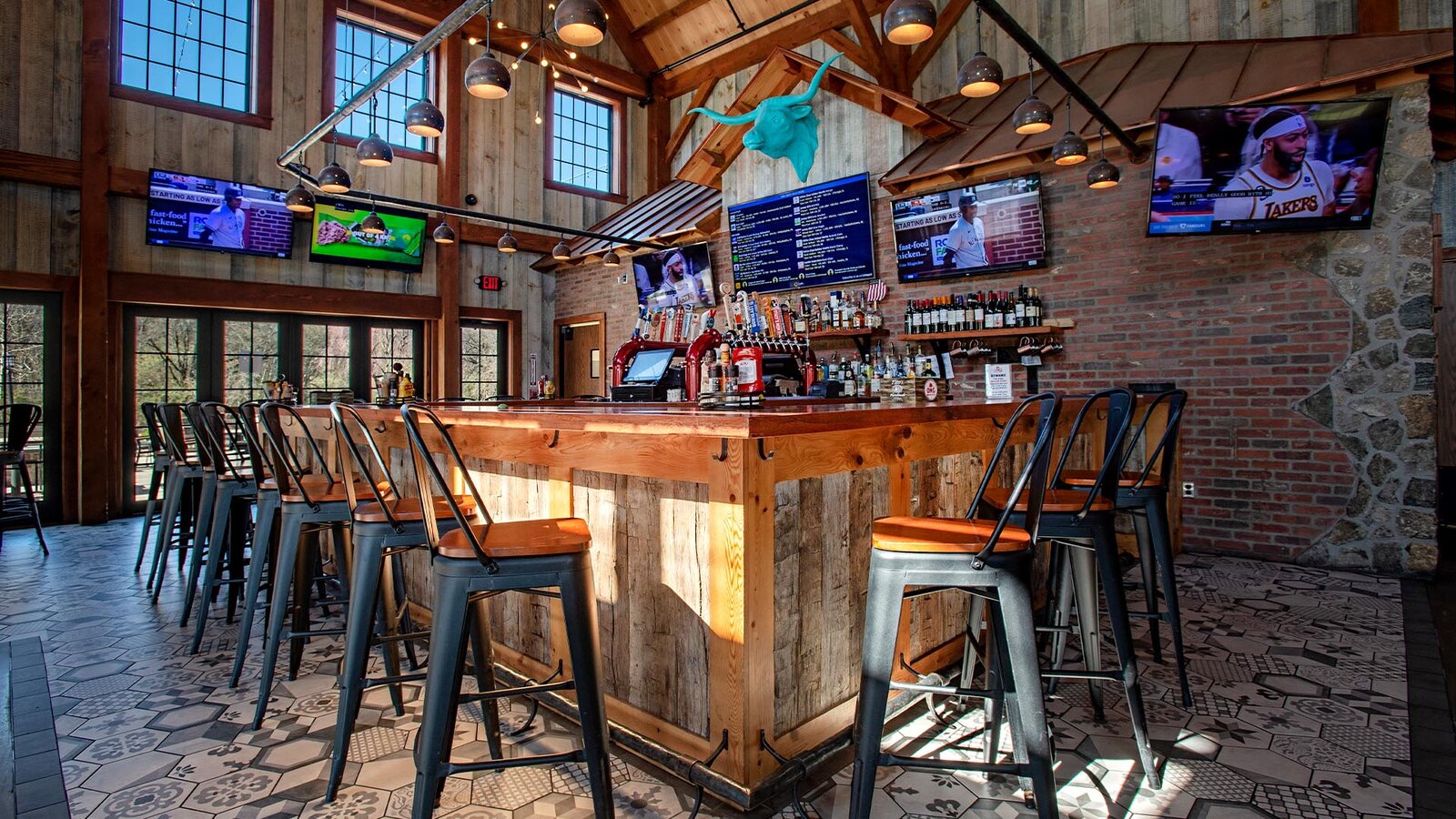 Bar area with multiple televisions